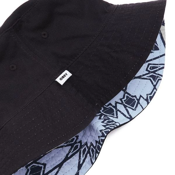 OBEY Bandana Bucket Hat – Navy / Black Reversible “Flat Top” Bucket Hat With Bandana Print And Cotton Twill Second Side is Black Bucket Hat With OBEY Flag Label 50% Cotton Poplin 50% Cotton Twill One size fits most