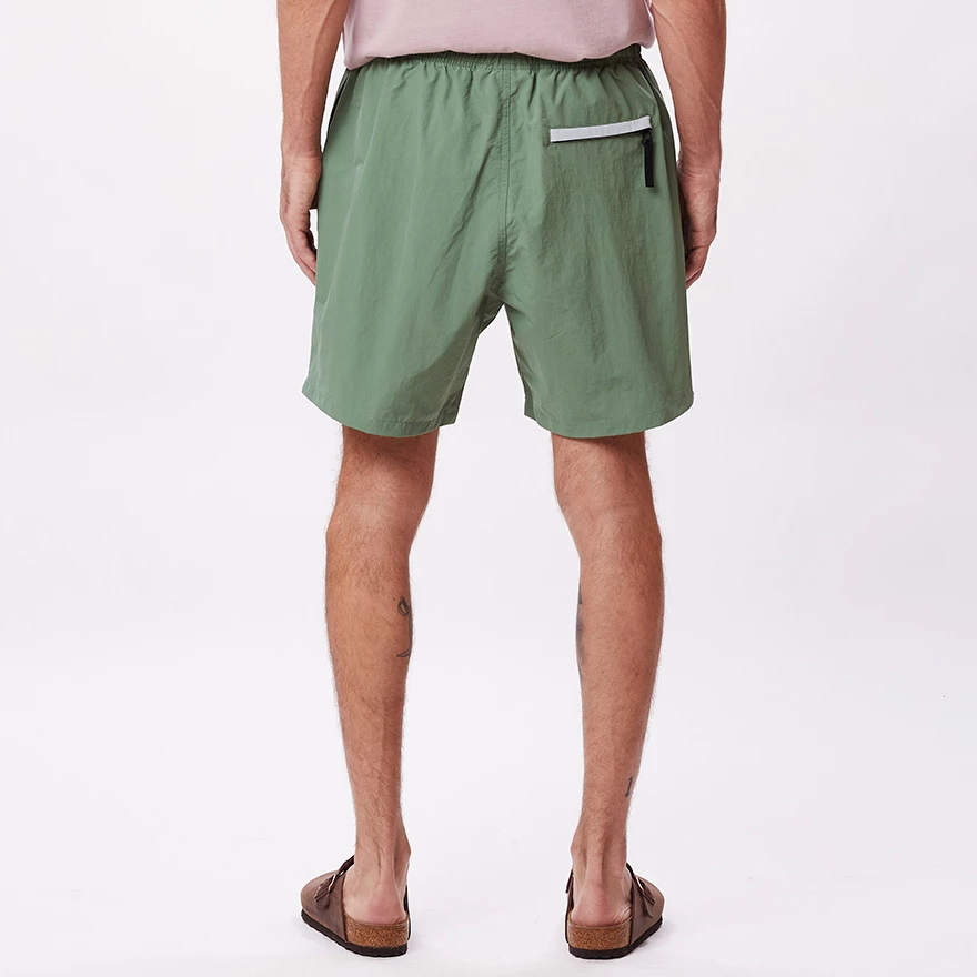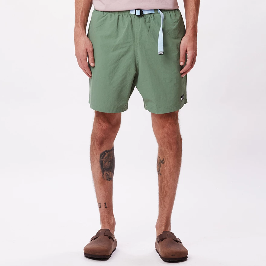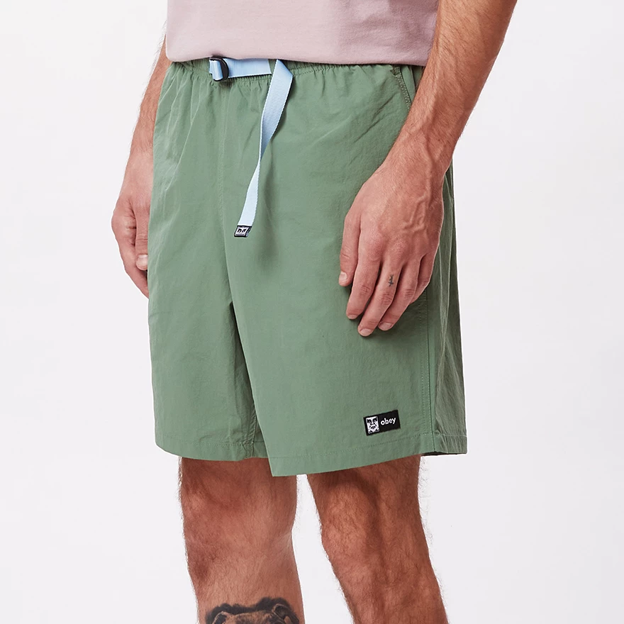 RELAXED FIT ELASTIC WAIST NYLON SHORT WITH WEB BELT. 100% NYLON.