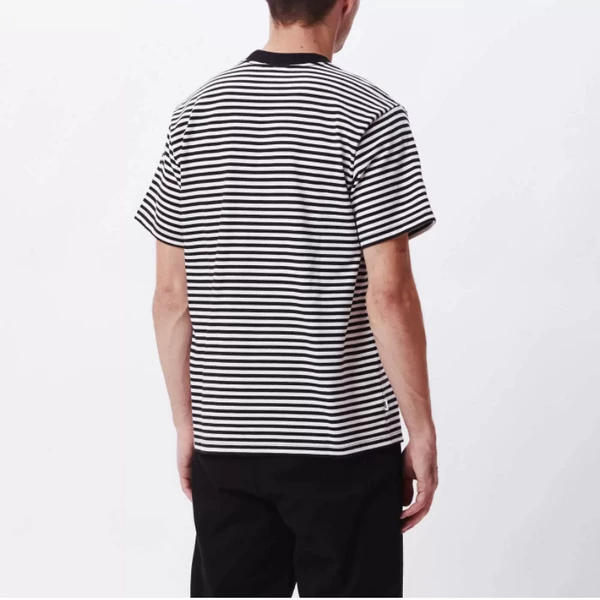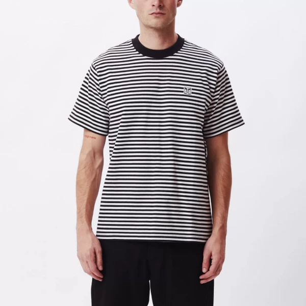 Founded in 2001, US streetwear label Obey is an extension of graffiti artist Shepard Fairey’s street and fine art campaign. Moving his populist views from the canvas to clothing, Fairey draws on workwear and military design influences across a selection of sweatshirts, print T-shirts and hoodies. REGULAR FIT MINI STRIPE SHORT SLEEVE KNIT WITH OBEY LABEL. 100% COTTON.