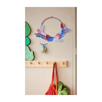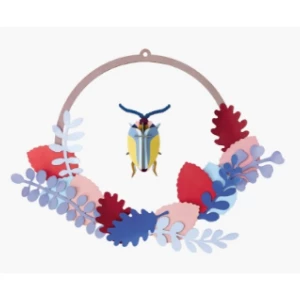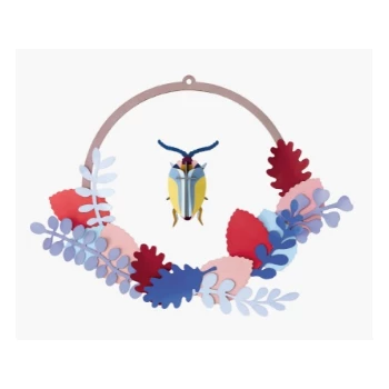 ¡Un pequeño escarabajo curioso también se ha abierto camino en el ramo! ¡Simplemente saca el escarabajo de cartón y las hojas de papel y colócalos para crear tu propia corona casera!