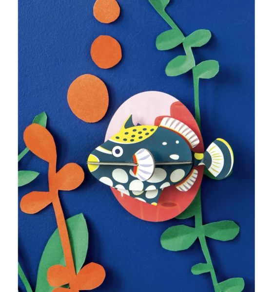 This colourful Clown Triggerfish is printed on recycled cardboard using vegetable ink. These colourful fish with their bright graphic patterns allow you to add a little beauty to both your home and the world. A 3D object to build, comes flatpacked; • Made of recycled cardboard and printed with vegetable inks • Dimensions when built up: 12 x 6 x 10 cm – 4.7 x 2.4 x 4″ • 2 x B6 sheet with 5 pieces to pop out and assemble; • Assembly instructions can be found on the inside of the packaging
