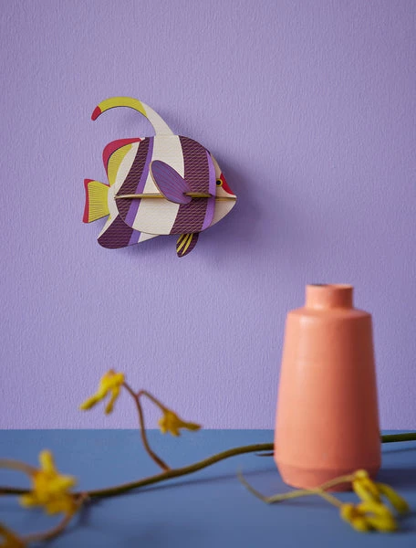 Put on your diving mask and plunge in! What you’ll see next is all colour and movement, an underwater world full of tropical fish. 3D object to build, comes flatpacked;Made of recycled cardboard and printed with vegetable inks;Dimensions when built up: 11x 6×11,5 cm / 4,3×2,3×4,5″;4 x B7 sheet with 5 pieces to pop out and assemble;Assembly instructions can be found on the inside of the packaging.REF TTM156
