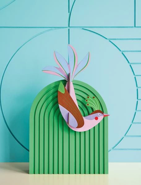 These birds of paradise out of recycled cardboard are special treasures for your home: always colourful and alluring with their striking graphic patterns. Maui’s extravagant character is magnified by his dramatic plumage. Find Maui the right spot in your home and you might witness one of its distinguished feathered dances. 3D object to build, comes flatpacked; Made of recycled cardboard and printed with vegetable inks; Dimensions when built up: 21x5x27 cm / 8.3x2x10.6″; 2 x B5 sheet with 6 pieces to pop out and assemble; Assembly instructions can be found on the inside of the packaging.