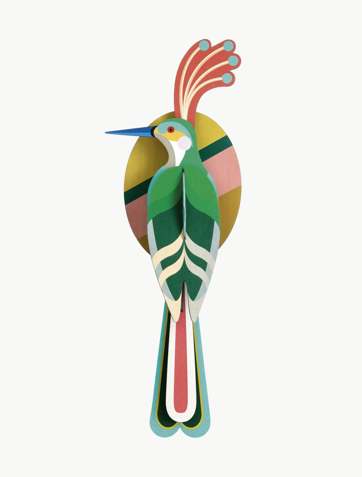 3D object to build, comes flatpacked; Made of recycled cardboard and printed with vegetable inks; Dimensions when built up: 14 x 9 x 39 cm; 5.5 x 3.6 x 16″ ; 2 x B5 sheet with 8 pieces to pop out and assemble; Assembly instructions can be found on the inside of the packaging.