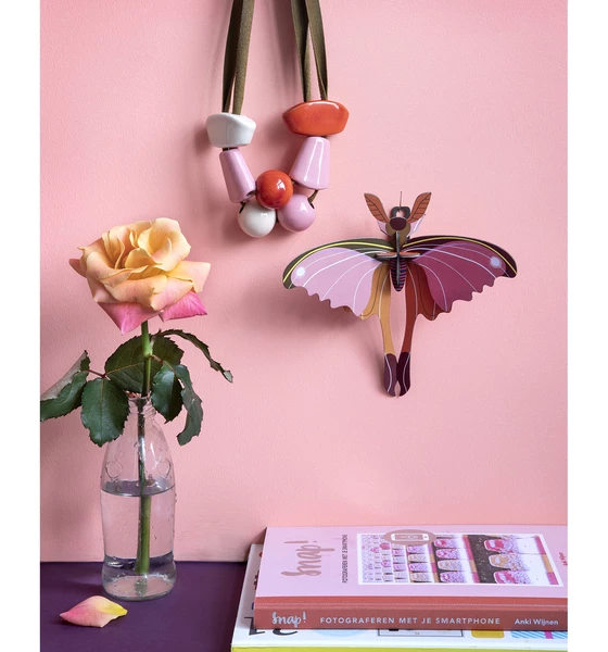 Take some time to have a really close look at a butterfly or beetle and enjoy their captivating beauty. Did you know that of all creatures on our planet, eighty percent are insects? So you can imagine how important they are for our life on earth. The comet butterfly only flutters about on Madagascar! And from now on in your home as well. 3D object to build, comes flatpacked; • Made of recycled cardboard and printed with vegetable inks • Dimensions when built up: 16 x 6 x 17 cm • 4 x B6 sheet with 11 pieces to pop out and assemble • Assembly instructions can be found on the inside of the packaging
